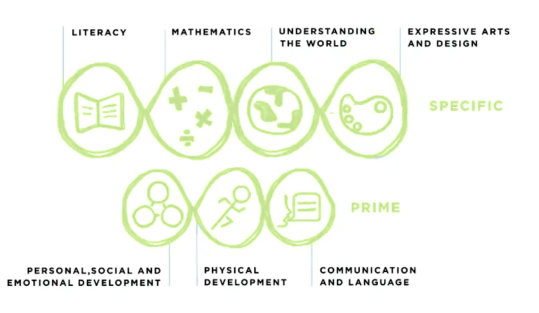 The BEYF sets out seven important inter-connected areas of learning. Of these, three are Prime areas crucial for building children’s capacity to learn, form relationships and thrive in their environment. These three prime areas form the foundation for the remaining four specific areas of learning.